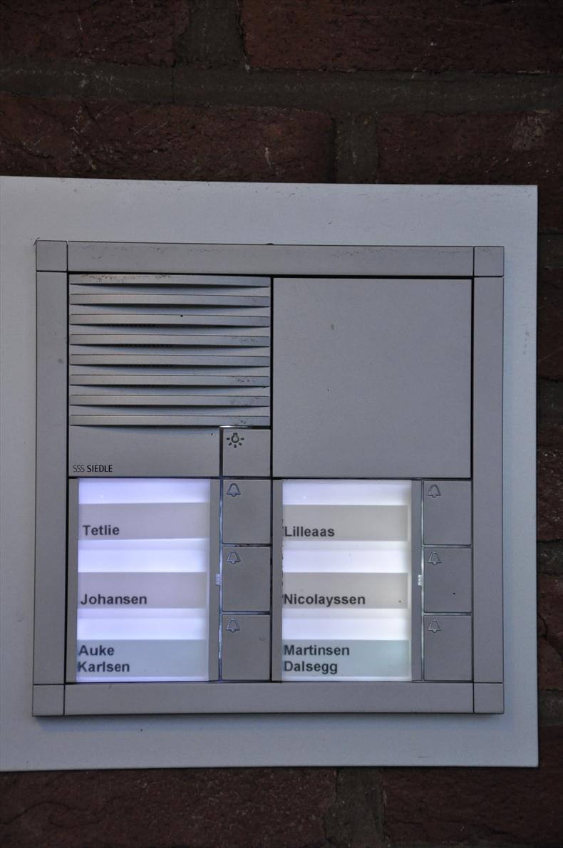 Installasjon av Siedle Vario i et sameie i Bærum. Her har de bare nummer på ringeklokke skiltene og opplysninsgs tavle siden av med navn. Da slipper man